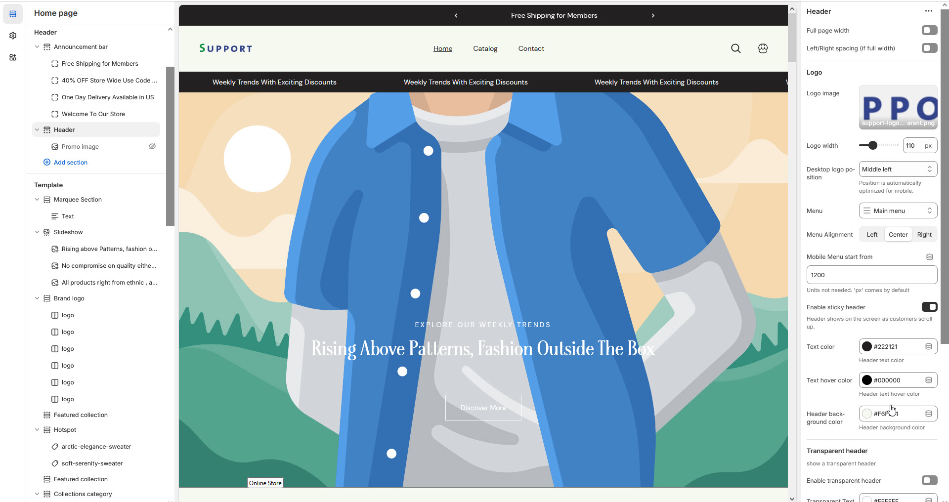 In the Theme Editor, navigate to Header Section.
