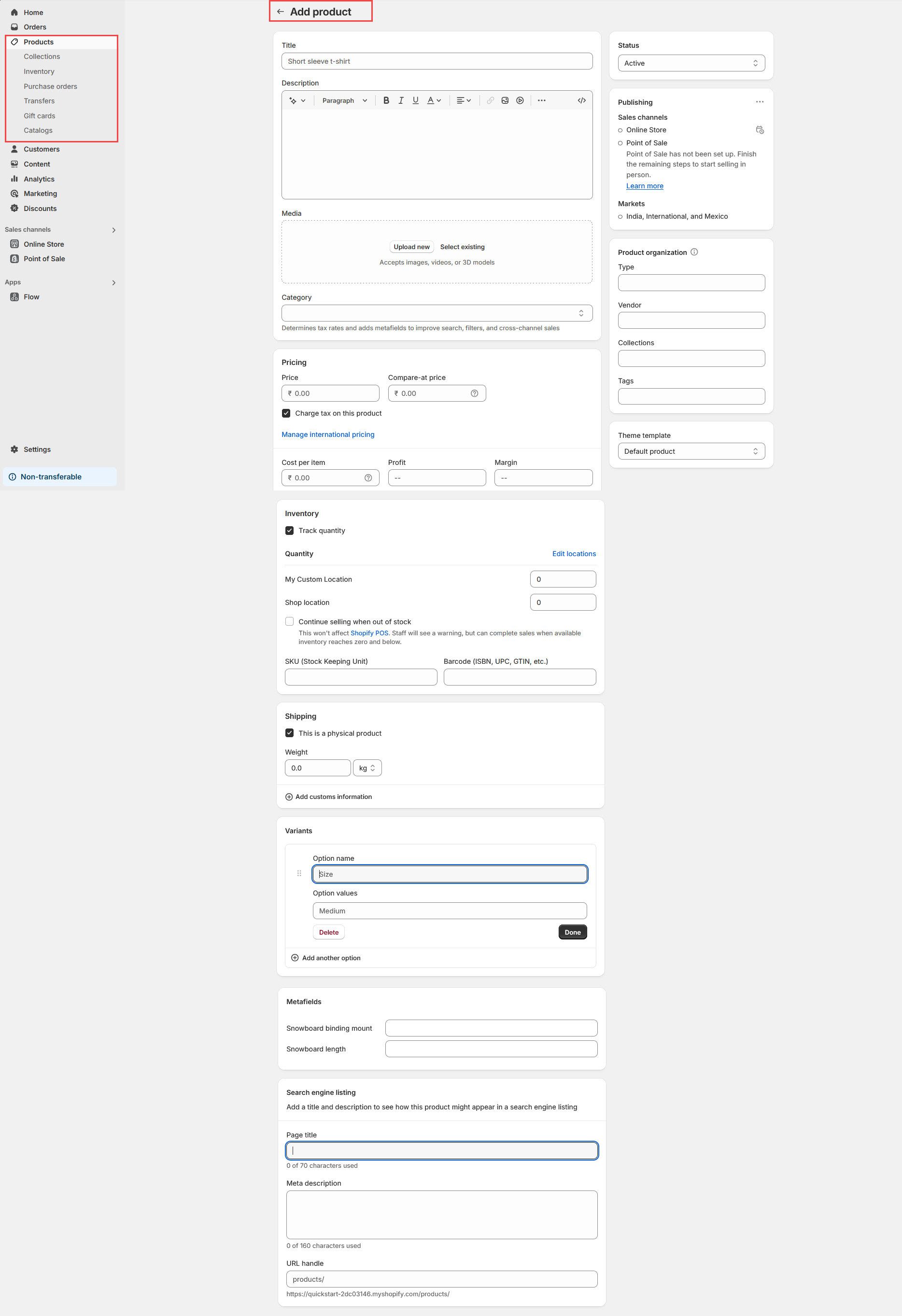 Set up Inventory & Shipping details (if applicable).
