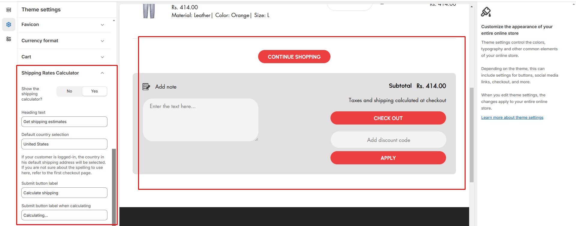 • Show the shipping calculator: The option allow to enable the shipping calculator in cart