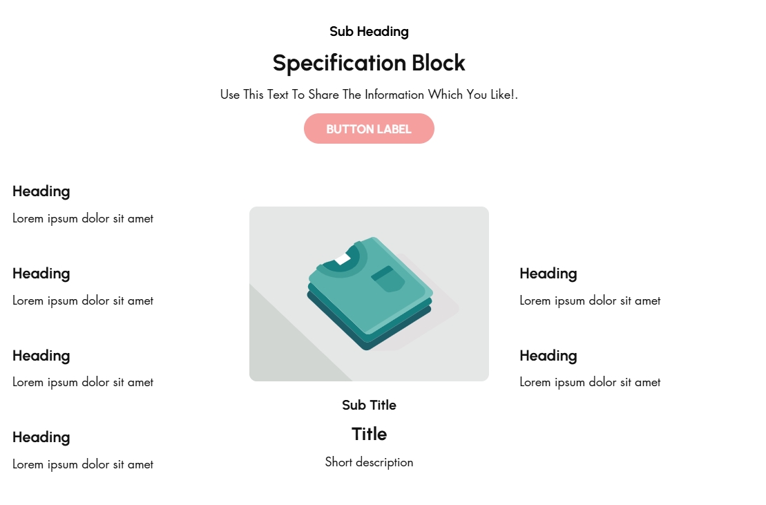 A Specification Block in Shopify is typically used to provide detailed information about a product's features, specifications, or technical details. This is especially useful for products that require detailed descriptions, such as electronics, appliances, or apparel with unique attributes.