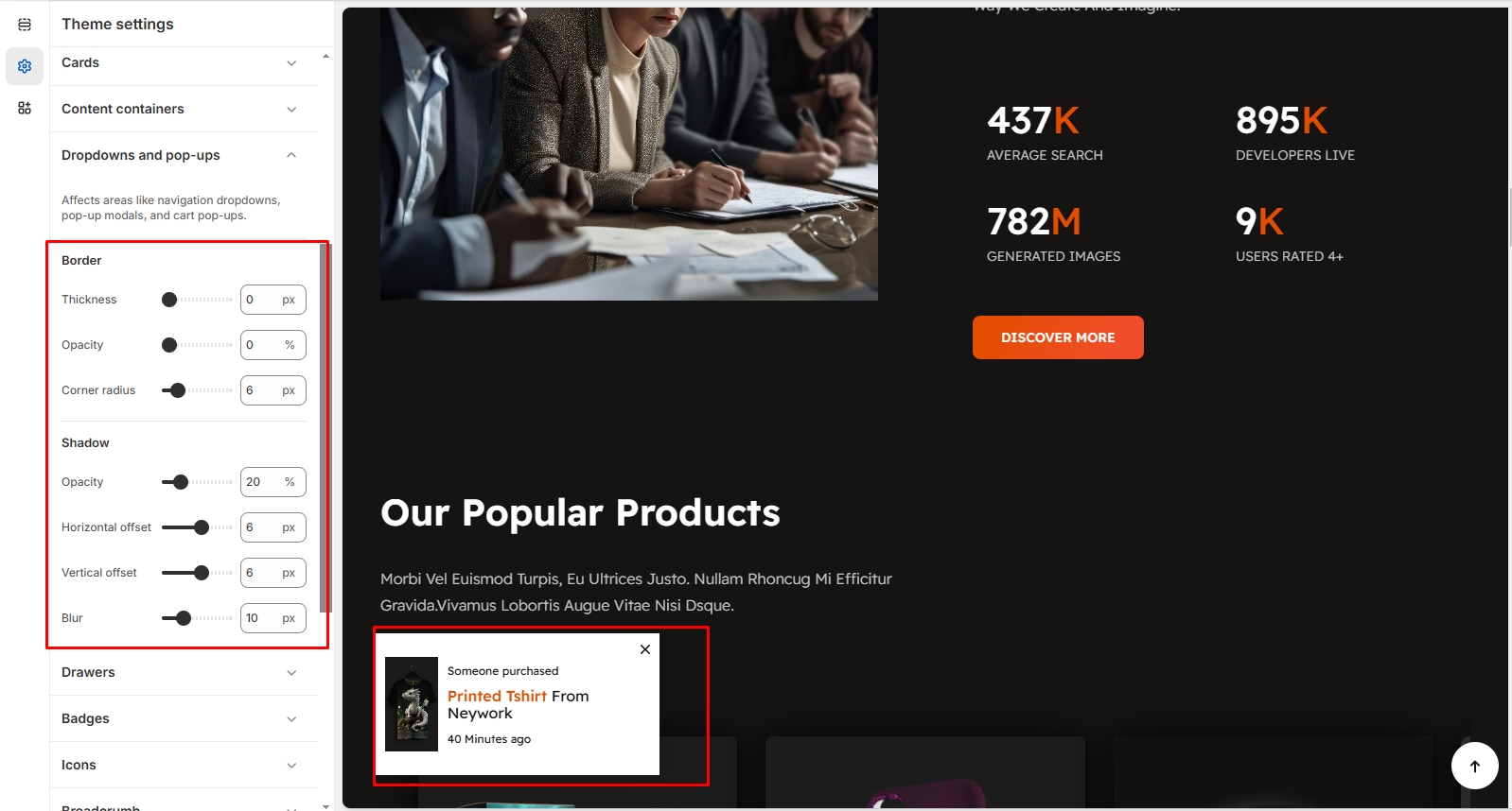 These settings add a shadow effect around each dropdowns and pop-ups, improving its depth and visibility.