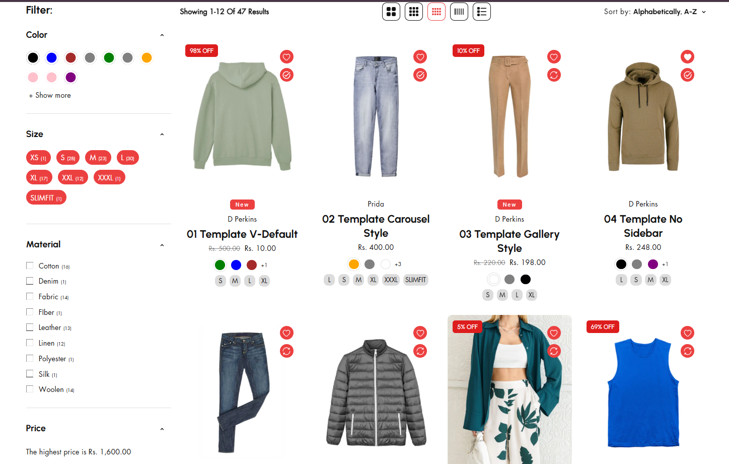 • Size Filter: Displays available sizes, like Small, Medium, or Large, for clothing, shoes, and accessories.