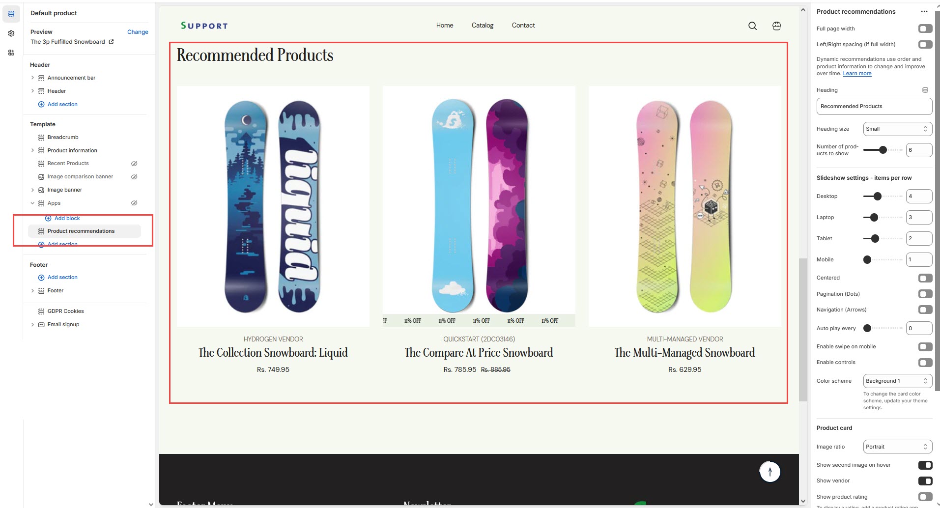 Heading: Customize the section title (Default: "Recommended Products").