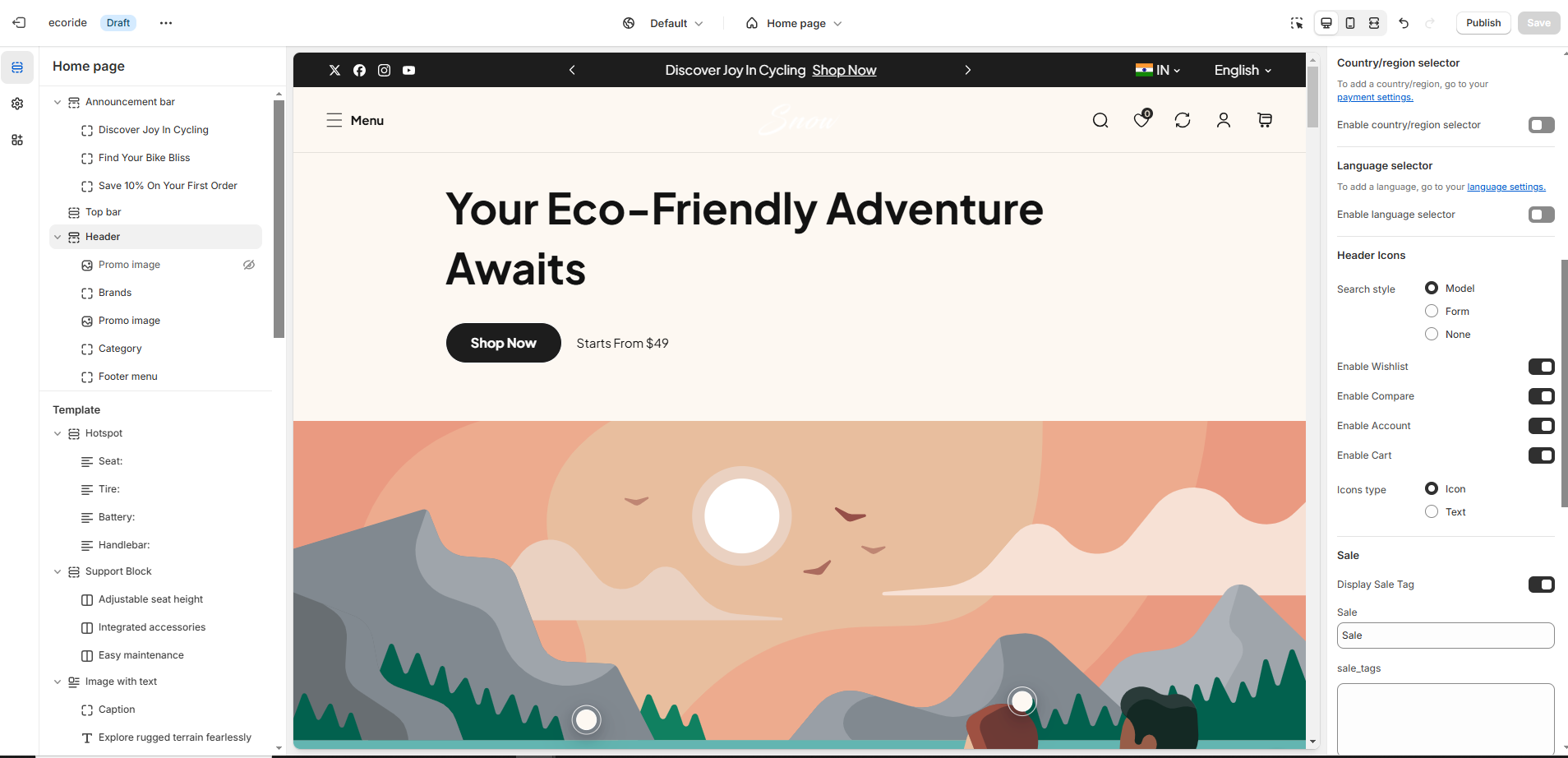The Header Section in Shopify is one of the most important areas of your store, as it appears at the top of every page. It typically includes your store's logo, navigation menu, search bar, and sometimes a shopping cart icon or additional links