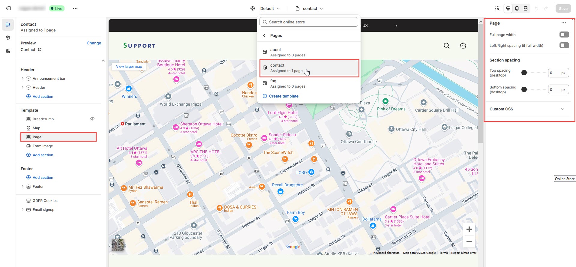 Step 4 : Select the Contact template from the Theme template drop-down menu in the Online Store section.