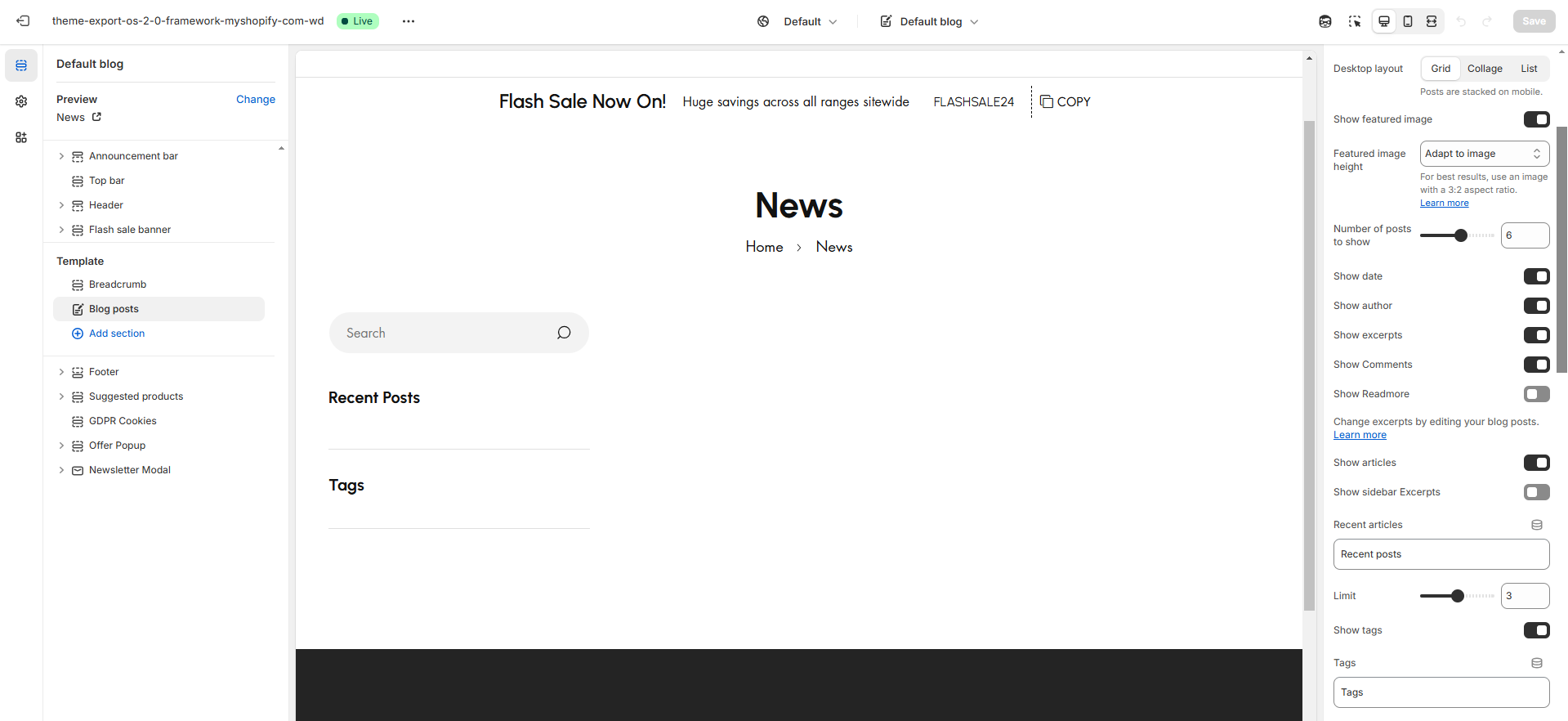 Desktop layout: Blog can be styled in 3 format (Grid,Collage)