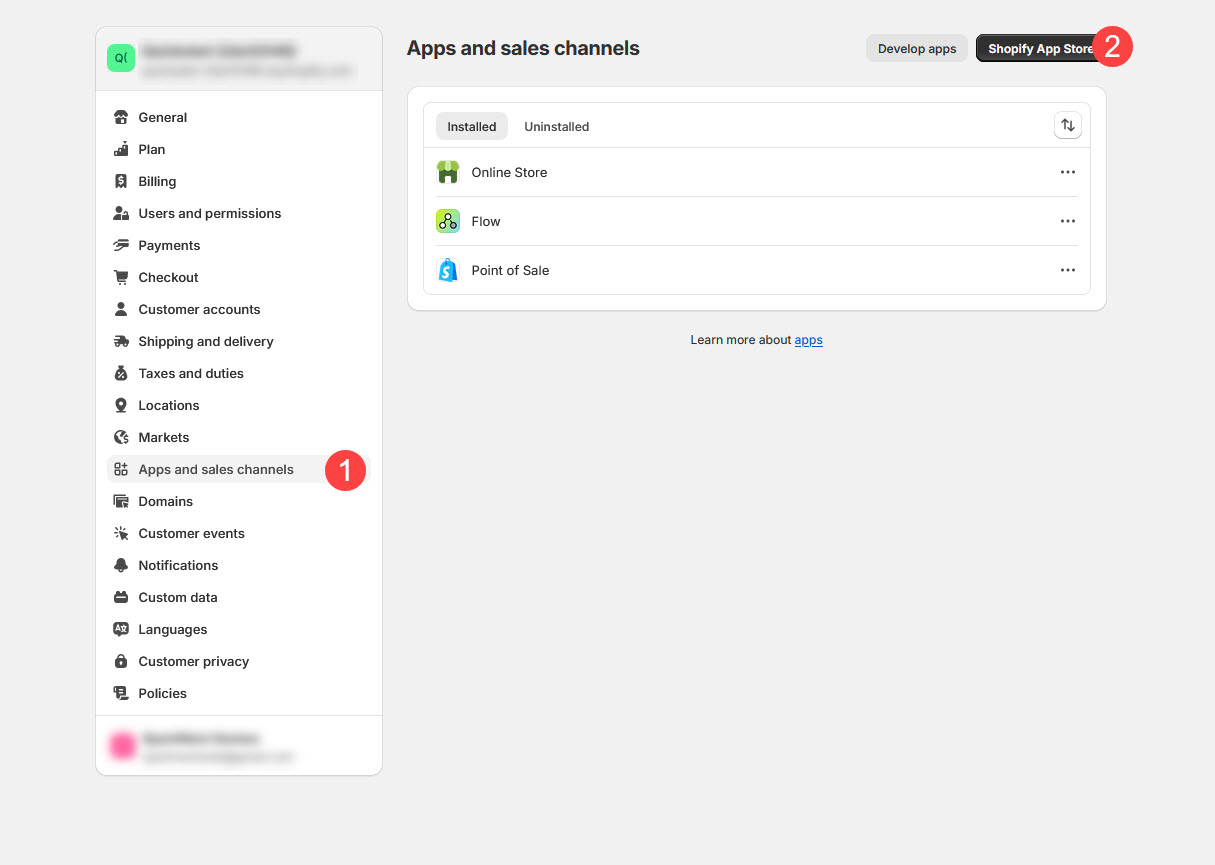 • Access the Shopify App Store: To install new apps, click on the Shopify App Store from your Shopify admin panel.