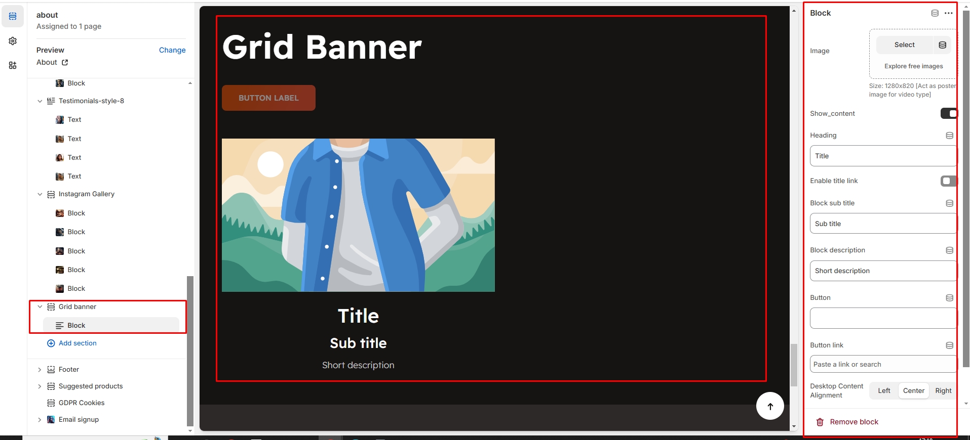 The Grid Banner Section allows you to display multiple banners in a structured grid layout, making it ideal for showcasing promotions, featured categories, or brand messages.