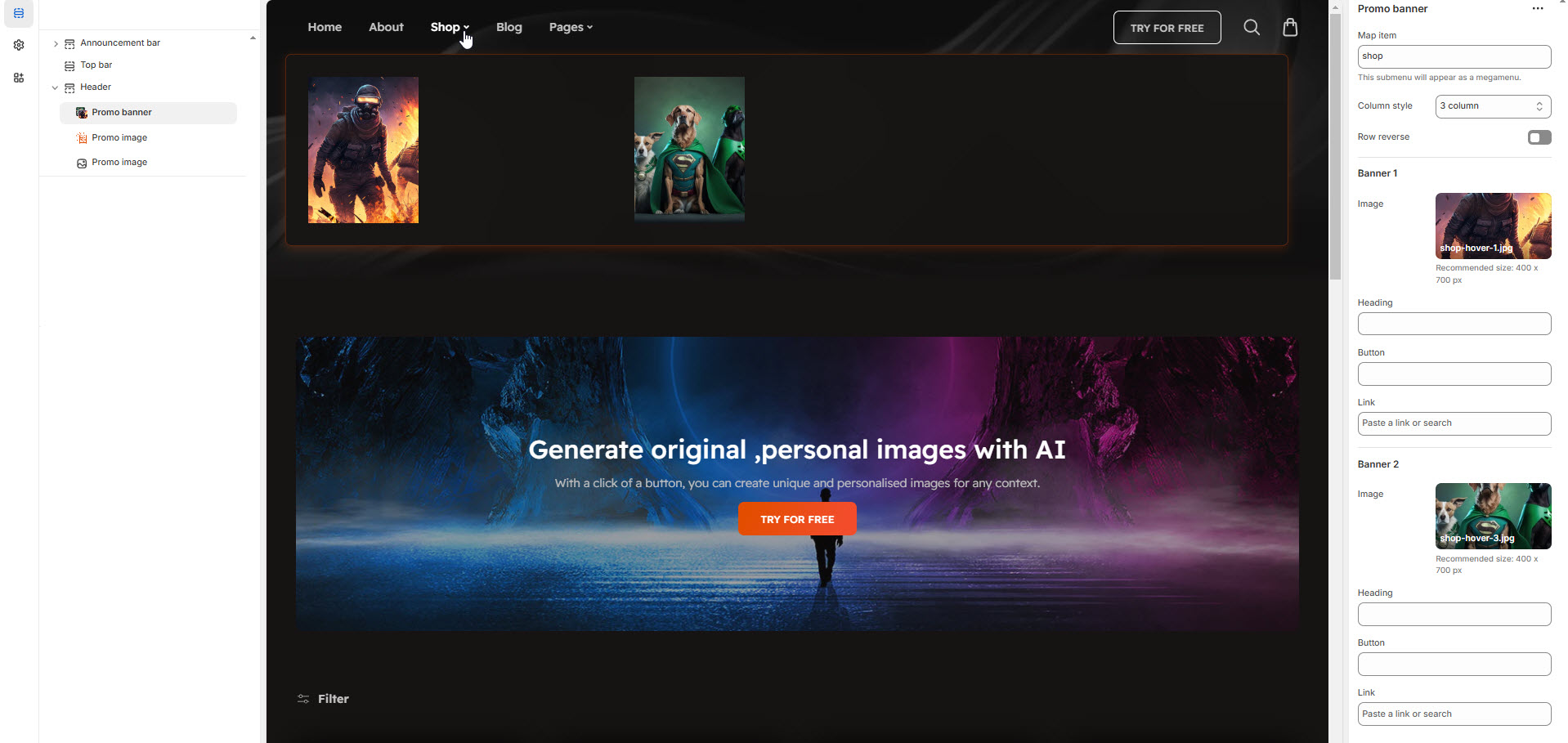 The Promo Banner feature allows you to display promotional banners within a megamenu, enhancing navigation with visual content such as special offers, featured products, or announcements.