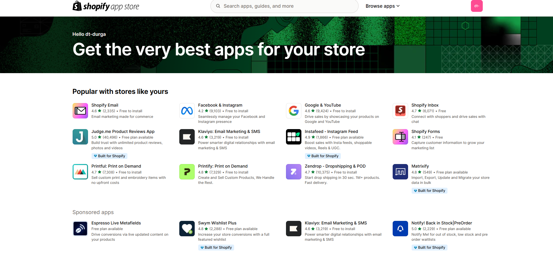 Apps available in shopify