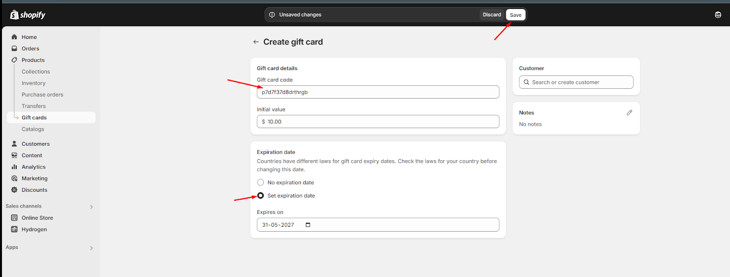 Step 1: Create a New Gift Card