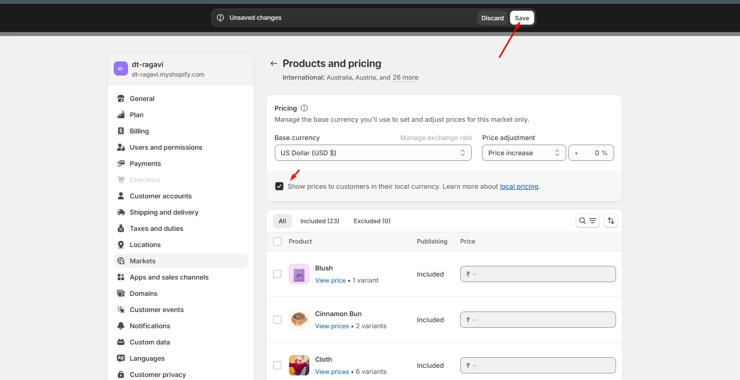Step 3: Select US Dollar (USD $) and check the box to show pricing